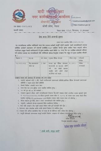 नगर पार्श्वचित्र निर्माण सम्बन्धि शिलबन्दी दरभाउपत्र आब्हानको सूचना