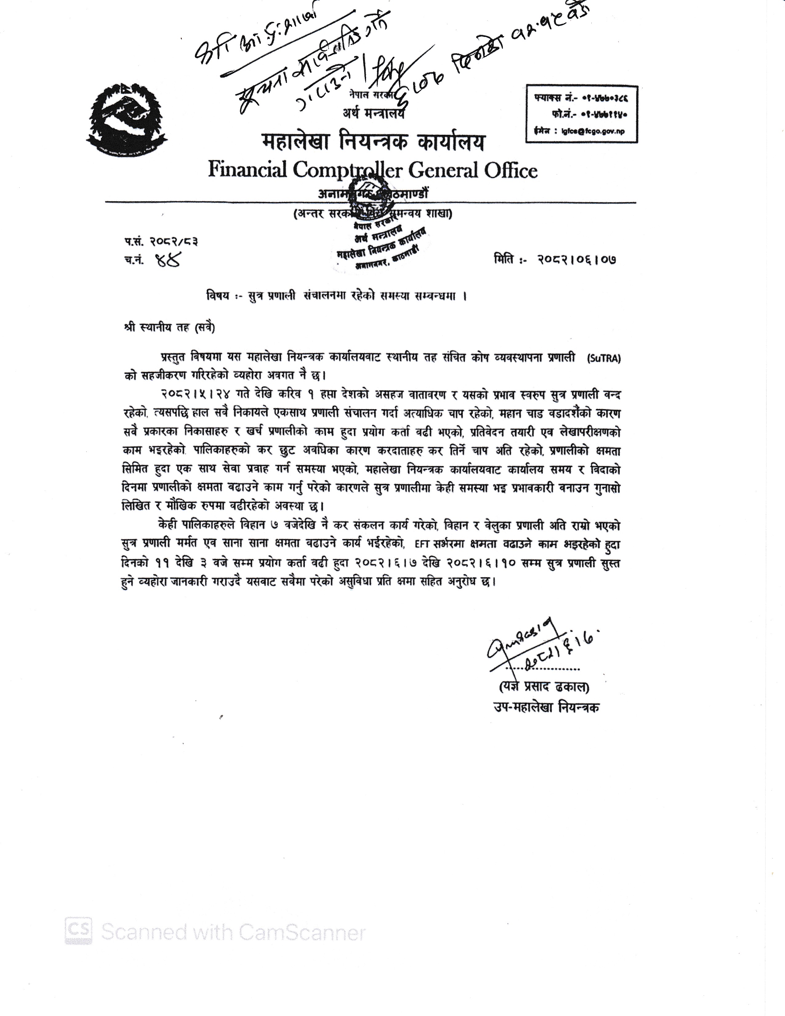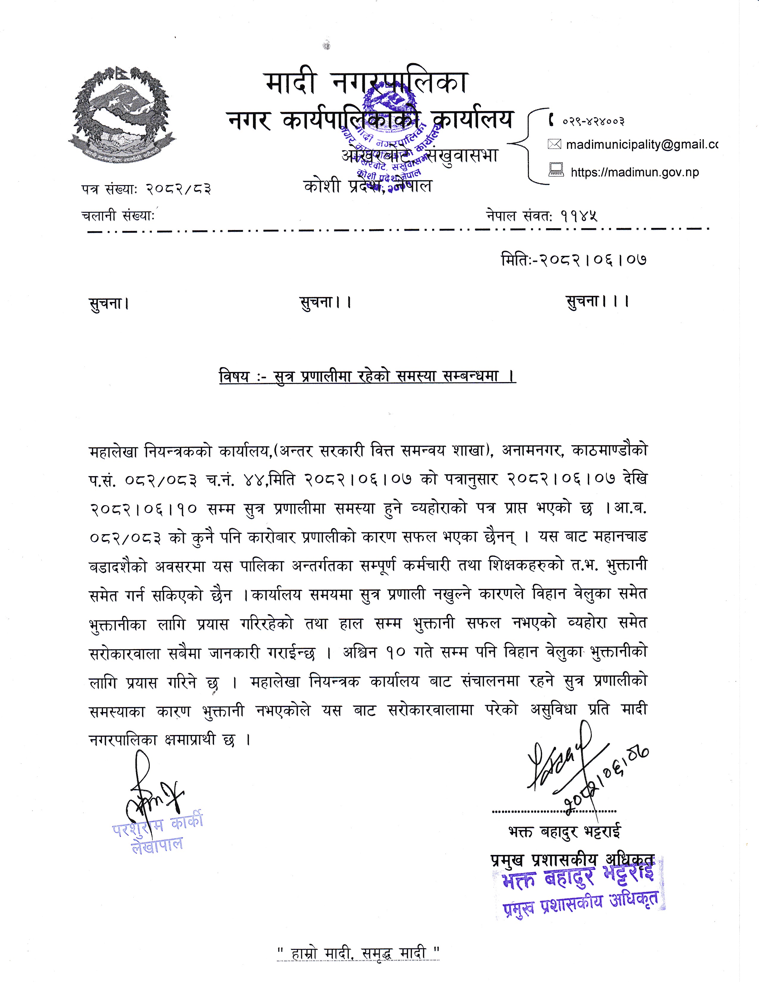 सुत्र प्रयालीमा रहेको समस्य सम्बन्धी ।