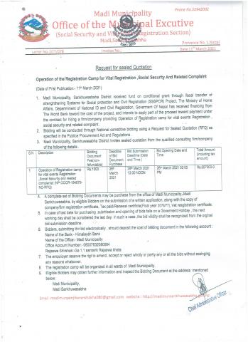 सार्वजनिक खरिद/बोलपत्र सूचना