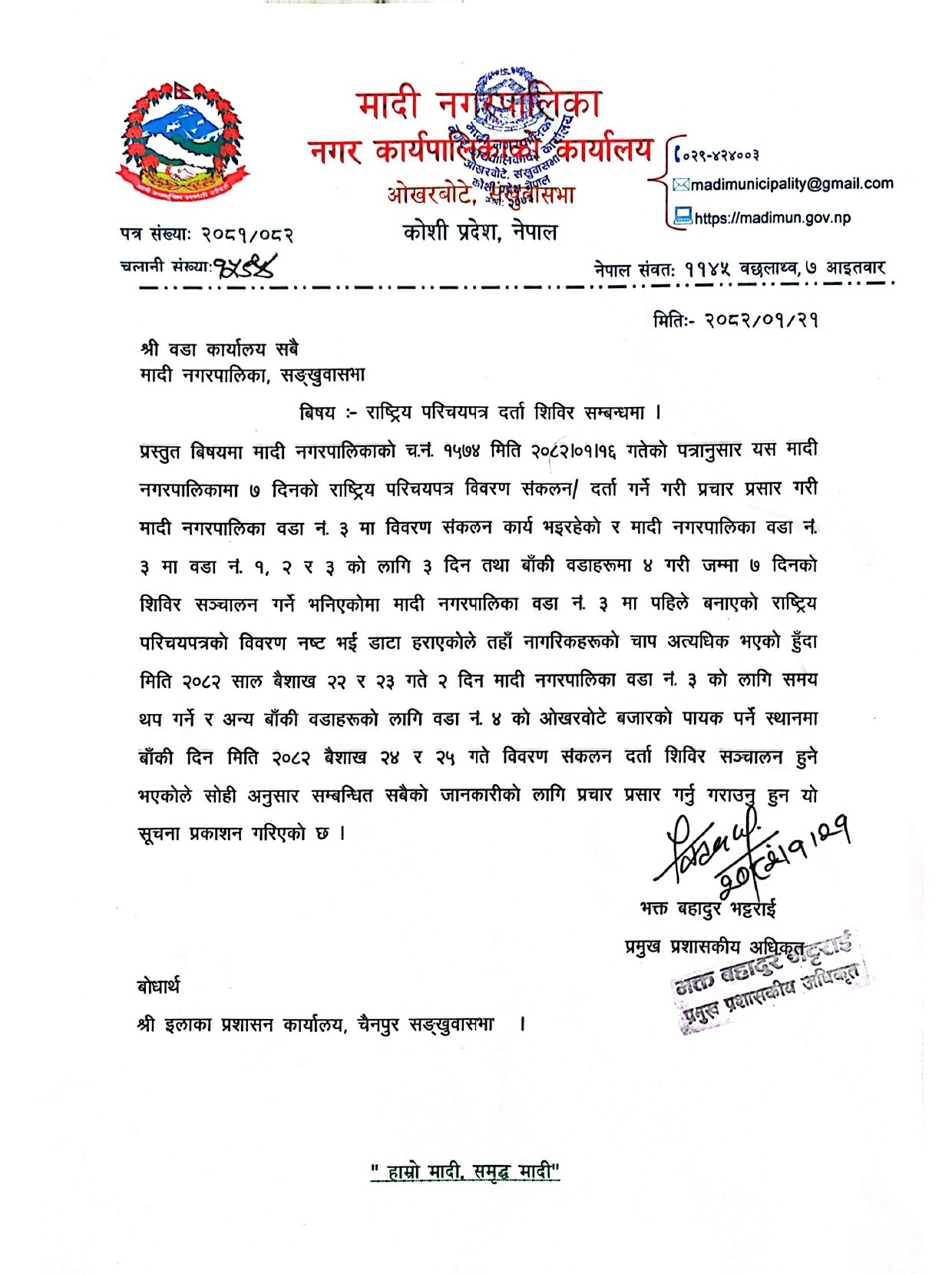 <p>प्रकाशन मिति: २०८२।०७।१८</p>