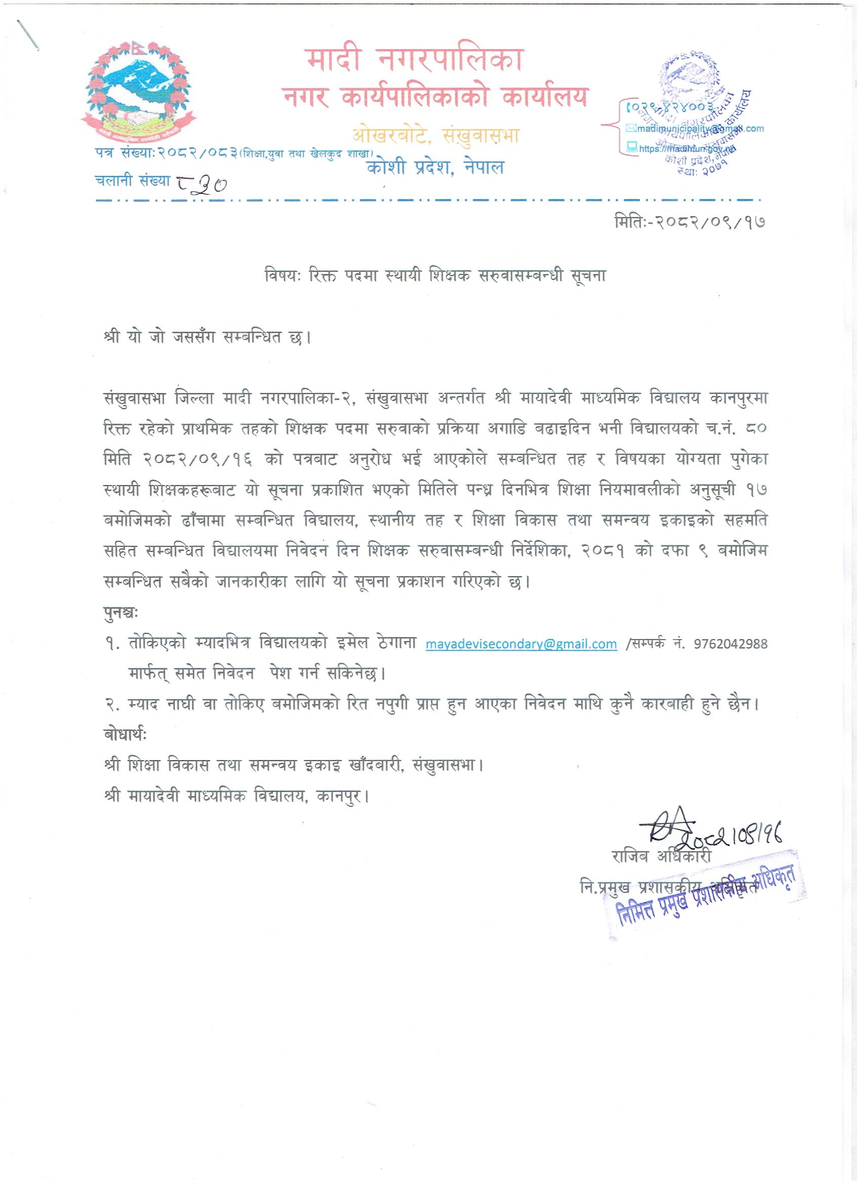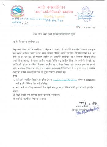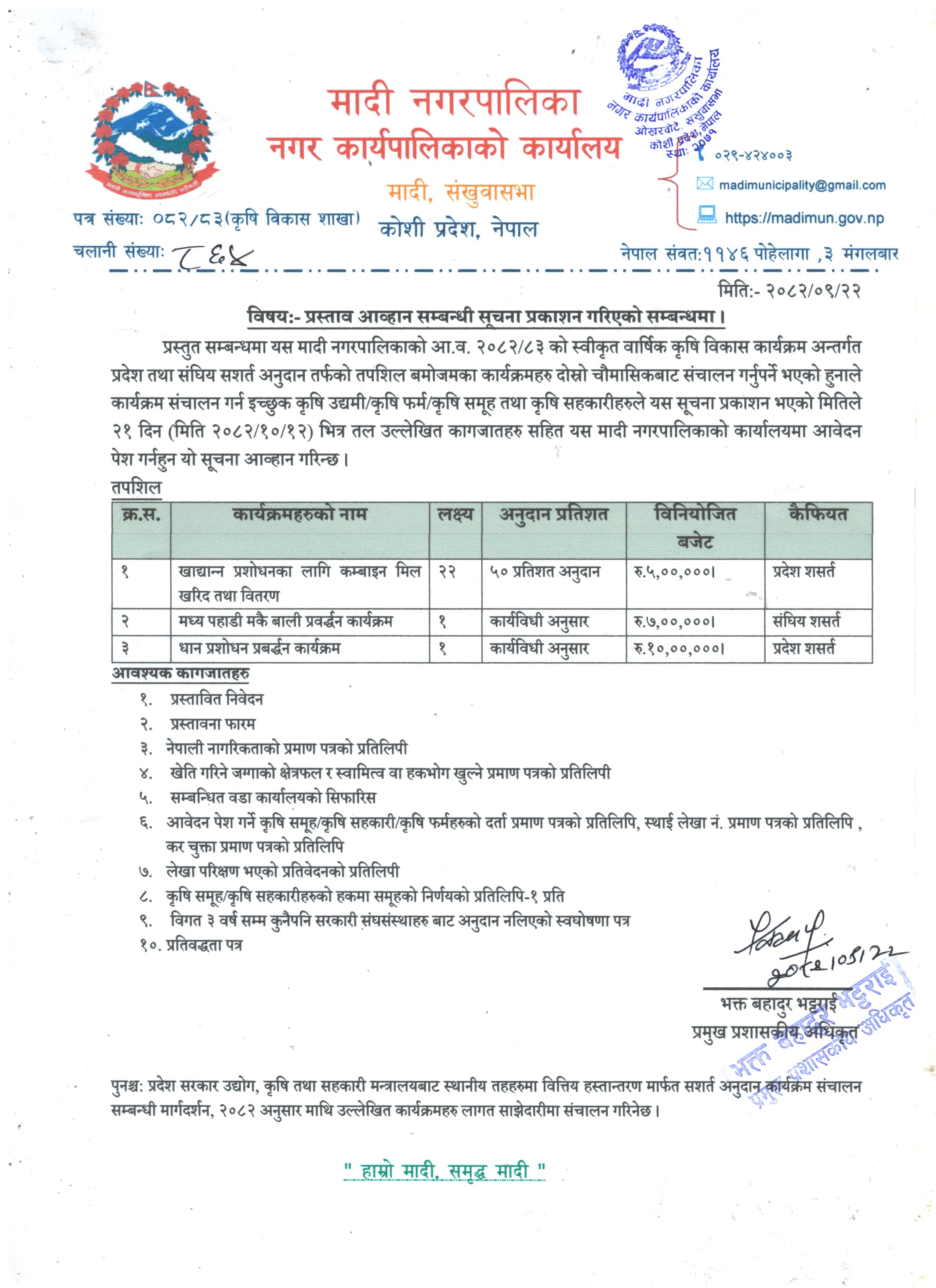 मादी नगरपालिकाको सूचना !!
